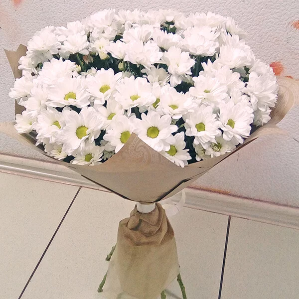 Спасибо, искала ромашки, но ромашки видимо сложно найти в это тяжелое время. ))). Но этот букет ничем не уступает в ромашкости ))). Очень высокие хризантемы почти 1 метр. Огромный букет, если будите заказывать 21 ветку. Однозначно рекомендую.