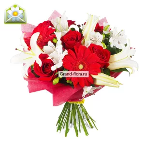 Букет красивый, мама довольна, но Доставка была с опозданием, пришлось возвращаться ей за букетом, и не получился сюрприз(Нов целом все хорошо.
