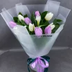 15 тюльпанов: тюльпаны белые и сиреневые/розовые - 15 шт., упаковка , лента.